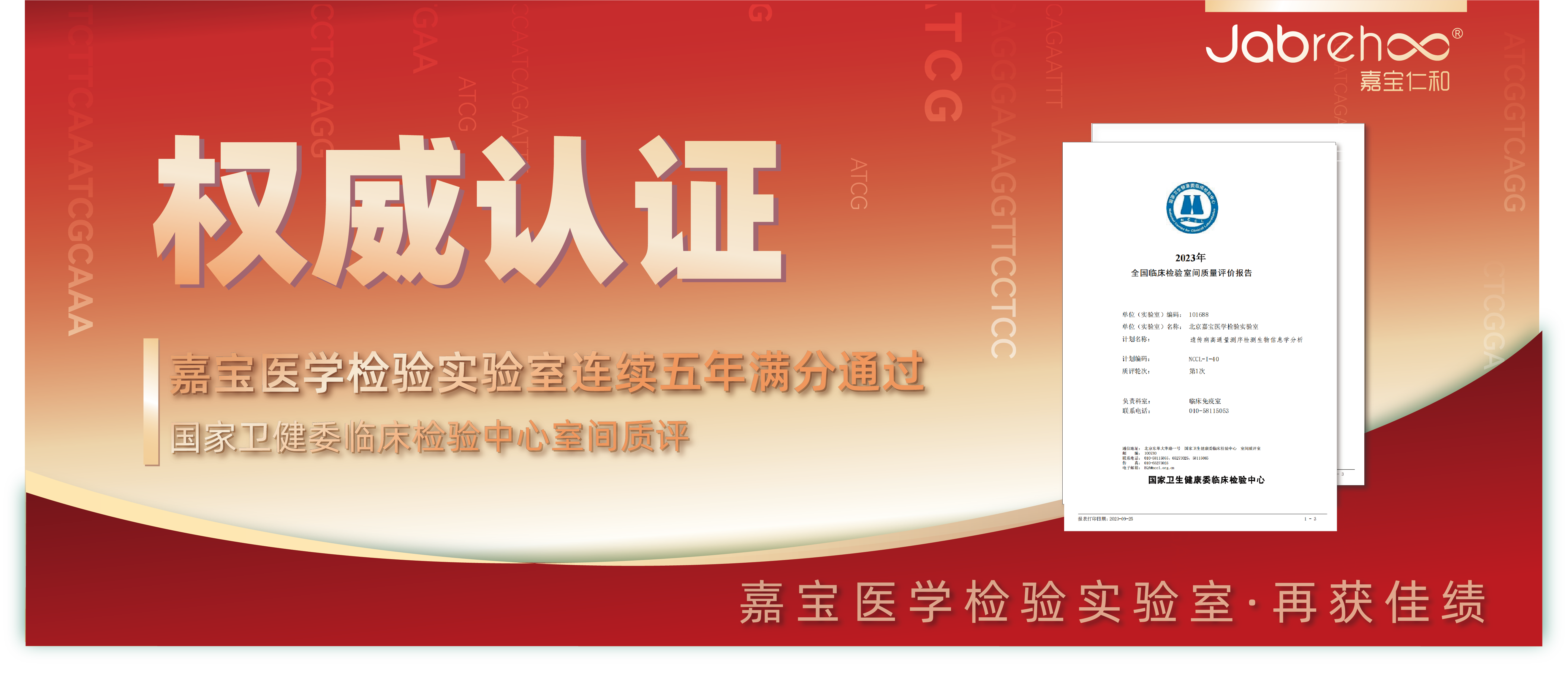喜訊不斷,捷報(bào)頻傳!近日,國(guó)家衛(wèi)生健康委臨床檢驗(yàn)中心(NCCL)公布了2024年全國(guó)臨床檢驗(yàn)實(shí)驗(yàn)室室間質(zhì)量評(píng)價(jià)結(jié)果,嘉寶仁和旗下北京嘉寶醫(yī)學(xué)檢驗(yàn)實(shí)驗(yàn)室順利通過(guò)"染色體基因組結(jié)構(gòu)異常"室間質(zhì)量評(píng)價(jià),檢出結(jié)果與預(yù)期結(jié)果一致。這是北京嘉寶醫(yī)學(xué)檢驗(yàn)實(shí)驗(yàn)室自2019年以來(lái)連續(xù)第六年以滿分的成績(jī)通過(guò)NCCL室間質(zhì)量評(píng)價(jià)。
