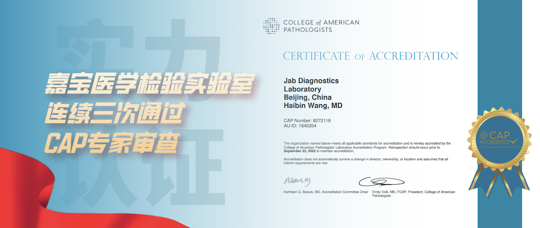 近日, 嘉寶仁和旗下北京嘉寶醫(yī)學(xué)檢驗(yàn)實(shí)驗(yàn)室順利通過(guò)美國(guó)病理學(xué)家協(xié)會(huì) (College of American Pathologists,簡(jiǎn)稱CAP) 兩年一次的專家復(fù)審 。本次實(shí)驗(yàn)室評(píng)審中, 胚胎植入前染色體非整倍體檢測(cè)(PGT-A-4M/1M)、胚胎植入前單基因病檢測(cè)(PGT-M)、胚胎植入前羅氏易位攜帶者檢測(cè)(PGT-SR)、胚胎植入前HLA配型檢測(cè)(PGT-HLA)、染色體拷貝數(shù)變異檢...