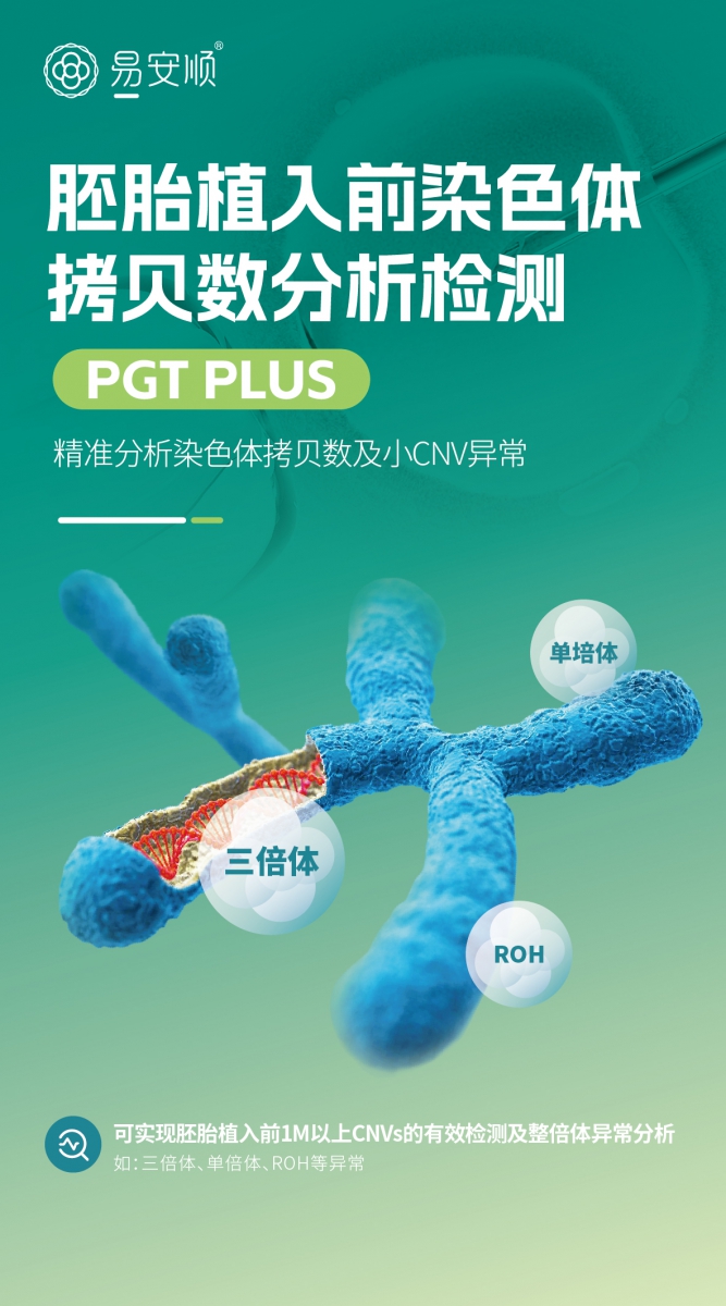 針對(duì)于植入前胚胎染色體異常檢測(cè)面臨的臨床問題,嘉寶仁和易安順®胚胎植入前染色體拷貝數(shù)分析檢測(cè)(PGT PLUS)可實(shí)現(xiàn)1M以上CNVs的檢測(cè),彌補(bǔ)了1M~4M之間這一常規(guī)PGT檢測(cè)無法覆蓋的分辨率區(qū)域,使得更多pCNVs能夠在胚胎植入前被發(fā)現(xiàn),同時(shí)可檢測(cè)三倍體、單倍體、UPD/ROH等臨床常見異常,指導(dǎo)植入前胚胎的移植選擇。
