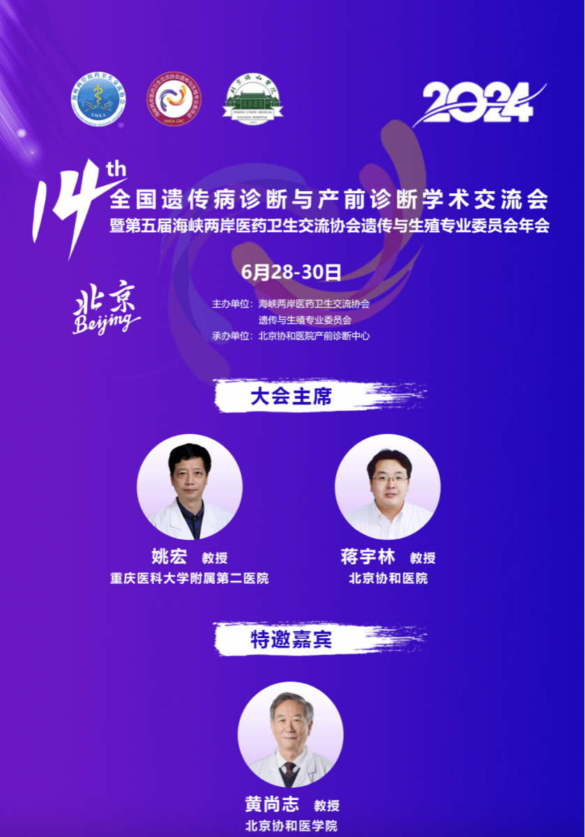 2024年6月28-30日,由海峽兩岸醫(yī)藥衛(wèi)生交流協(xié)會遺傳與生殖專業(yè)委員主辦,北京協(xié)和醫(yī)院產(chǎn)前診斷中心承辦的“第十四屆全國遺傳病診斷與產(chǎn)前診斷學(xué)術(shù)交流會暨第五屆海峽兩岸醫(yī)藥衛(wèi)生交流協(xié)會遺傳與生殖專業(yè)委員會年會”在北京即將召開。此次會議就“基因檢測新技術(shù)下的遺傳病篩查、診斷在生殖與產(chǎn)前診斷中的臨床運用規(guī)范與治療”主題進行廣泛、深入的探討與交流,以期加強國內(nèi)外相關(guān)專業(yè)領(lǐng)域的學(xué)術(shù)交流與合作,促進我國醫(yī)學(xué)遺傳學(xué)專科的發(fā)展。
