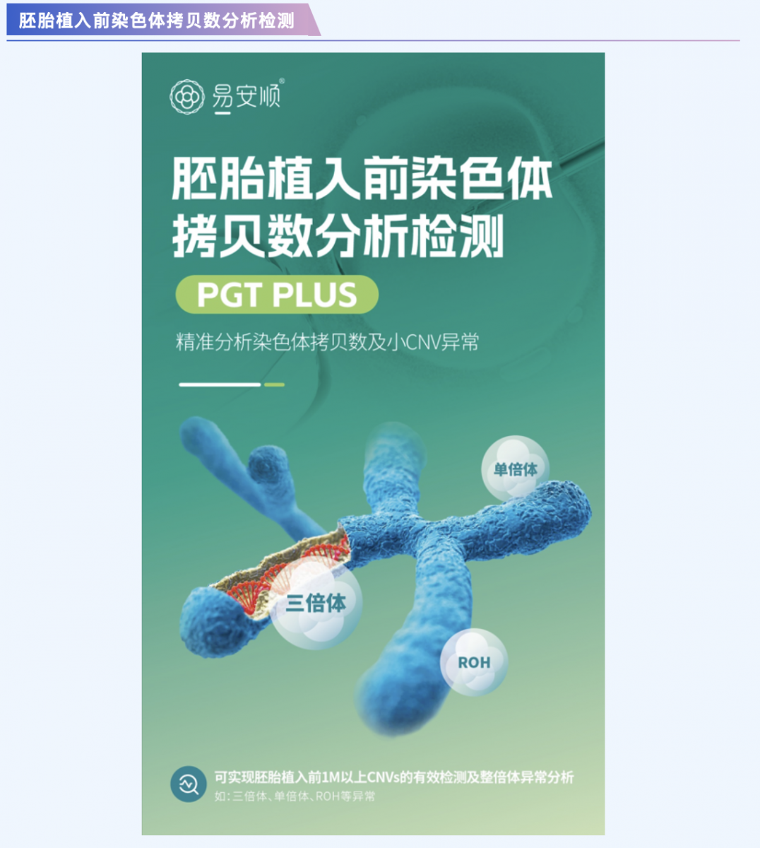 針對于植入前胚胎染色體異常檢測面臨的臨床問題,嘉寶仁和易安順®胚胎植入前染色體拷貝數(shù)分析檢測(PGT PLUS)可實現(xiàn)1M以上CNVs的檢測,彌補了1M~4M之間這一常規(guī)PGT檢測無法覆蓋的分辨率區(qū)域,使得更多pCNVs能夠在胚胎植入前被發(fā)現(xiàn),同時可檢測三倍體、單倍體、UPD/ROH等臨床常見異常,指導(dǎo)植入前胚胎的移植選擇。